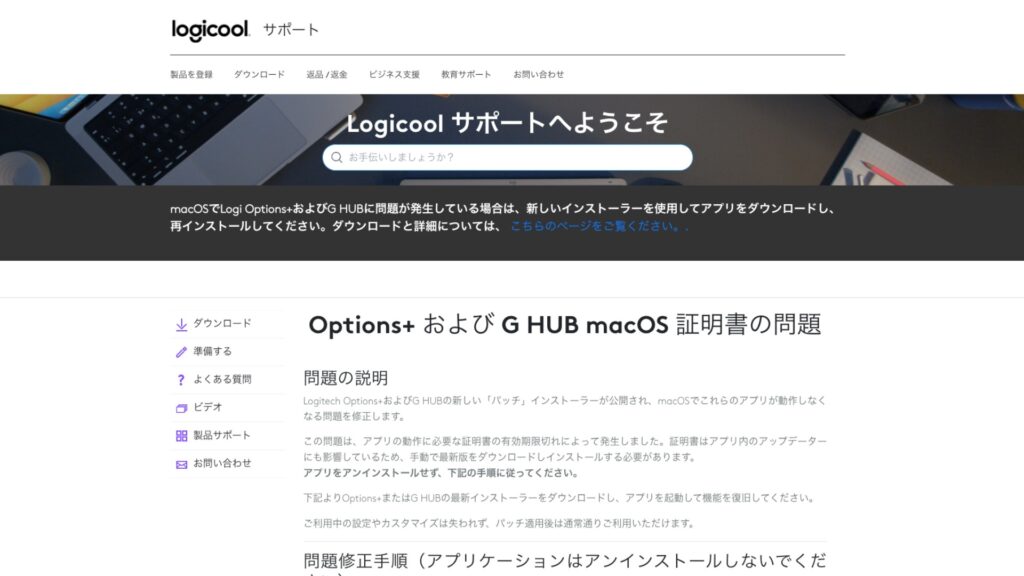 LogicoolがmacOS版「Logi Options+」「G HUB」で発生した証明書の不具合を説明。パッチ提供で復旧へ。