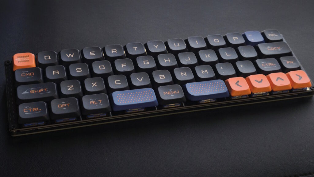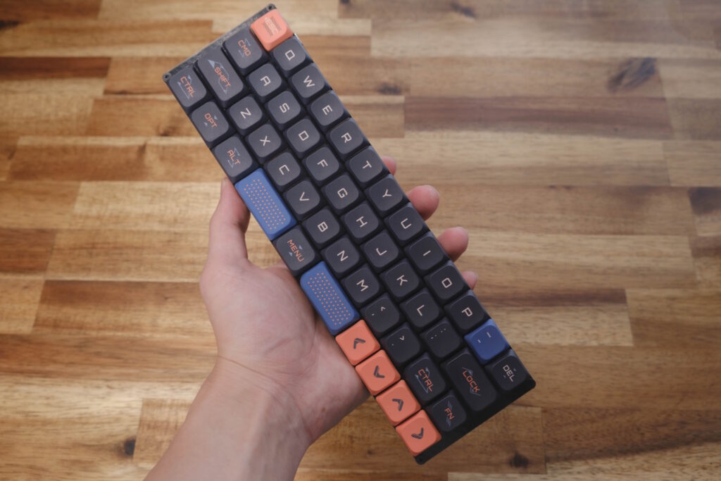 キーキャップはNuPhyのSpace Engineer。それなりに個性のあるデザインで、かなり気に入っている。自作キーボードといえば分割キーボードのイメージもあるが、こういったスタンダードな配列からキー数を減らしたものもある。