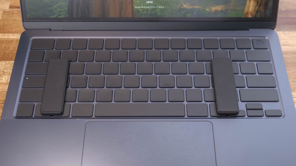 どう使うかというと、ノートPCのキーボード、その隙間に置くだけ。