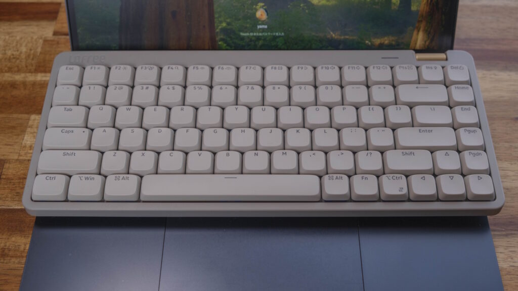 キーキャップも丸みを帯びたデザインで、可愛らしさが演出されている。使い始めは少し違和感を感じたが、使っていくうちに慣れた。またキースイッチもコトコト感のある打鍵感で、木製ケースのおかげかタイピング音も柔らかい印象だ。
