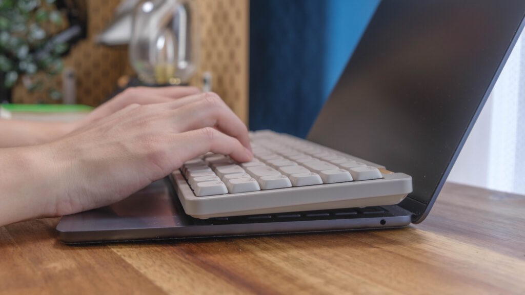 それにトラックパッドの操作もスムーズにできるので、ただ外付けキーボードをノートPCの前に置くよりも、スマートな状態と言える。そもそもノートPCのキーボードで事足りている人には不要かもしれないが、出先でノートPCとお気に入りのキーボードを使いたい人は必要になるはず。