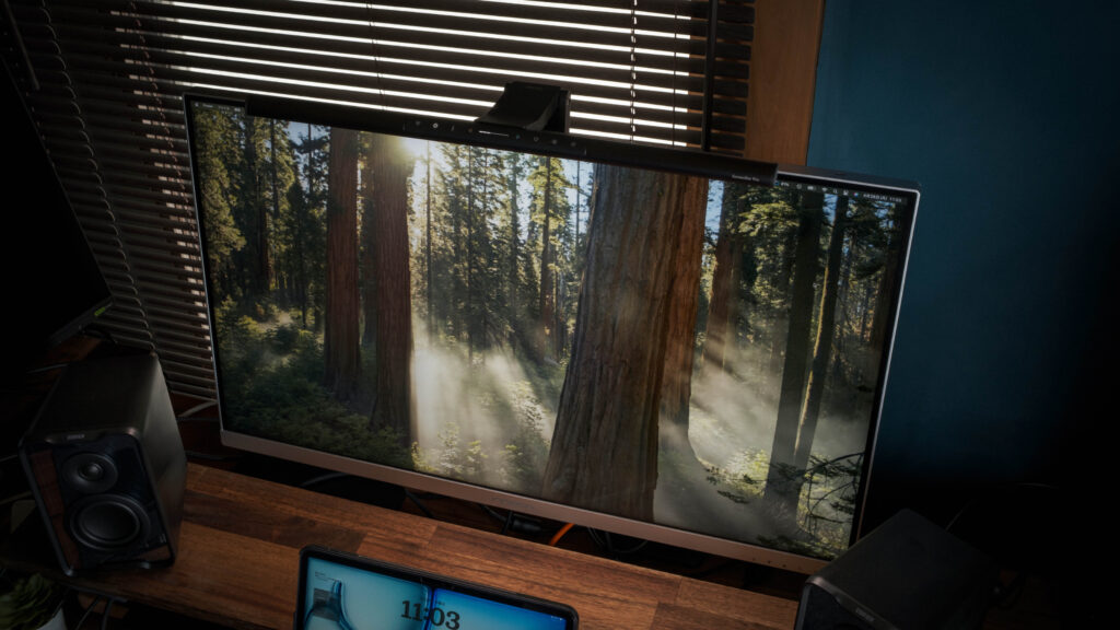 窓の近くにデスクを置いている場合、日中ではモニターライトの効果を感じづらいだろう。筆者のデスクは横から自然光が当たるので、モニターライトを使ってもあまり違いを感じづらい。