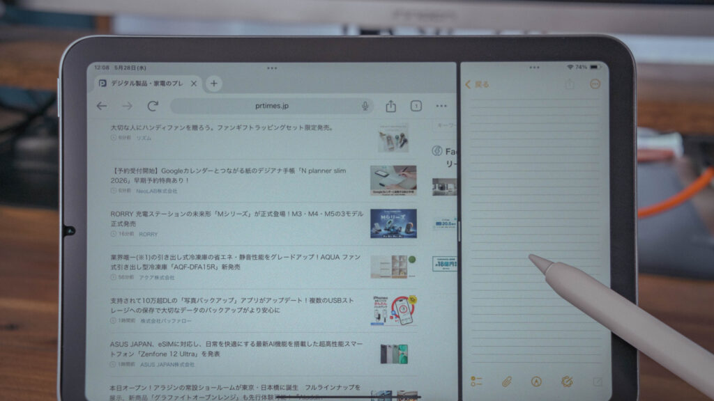 なんだかんだ筆者はiPad Air 第5世代を使用中だ。13インチより取り回しやすく、miniより大きい画面で作業できる。動画視聴や読書、執筆作業などオールラウンダーで活躍するサイズだ。