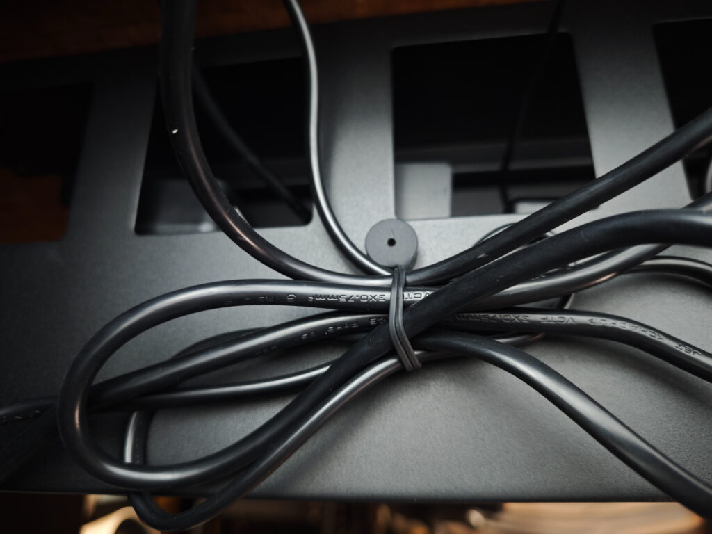 デスク裏なら床よりも視界に入りづらいし、雑にケーブルをまとめたとしても気にならない。デスク下に潜ってセッティングするのは少々辛いが、やる価値はある。