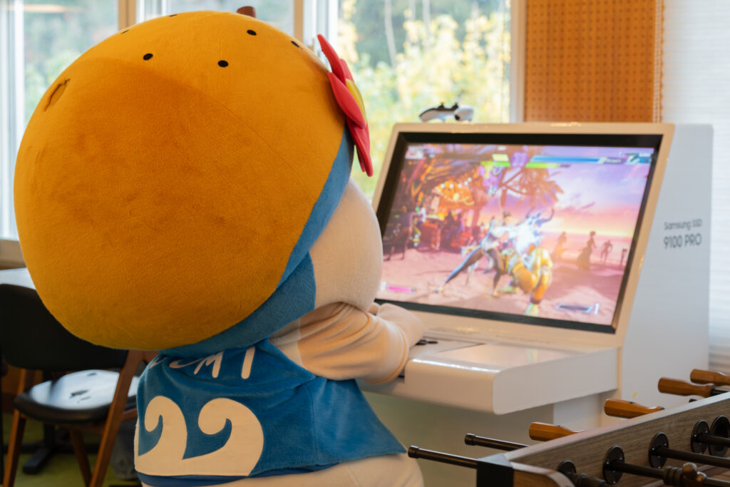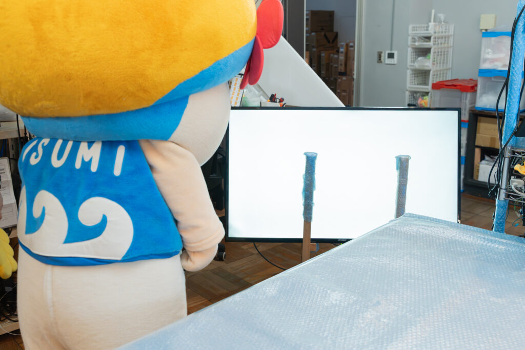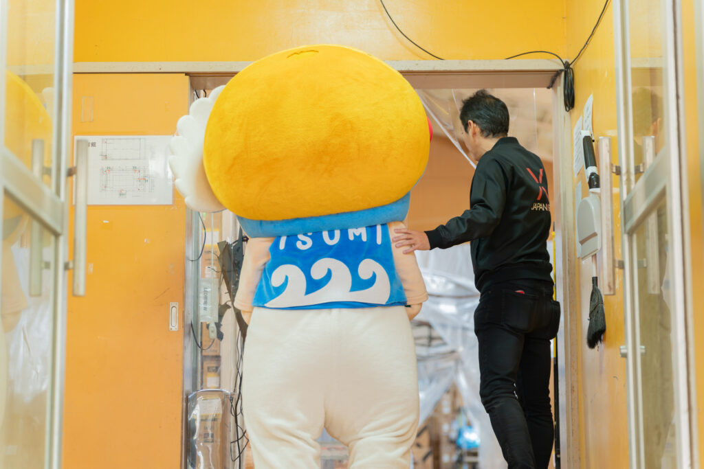 そしてたどり着いたJAPANNEXT本社、そこで我々を迎えてくれたのは…いすみ市の公式マスコットキャラクター「いすみん」である。