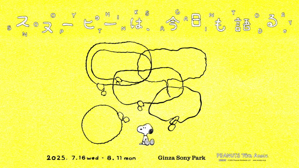 Ginza Sony Park(銀座ソニーパーク)と株式会社ソニー・クリエイティブプロダクツは、世界中で愛されるコミック「PEANUTS」の誕生75周年を記念し、スヌーピーたちの「言葉」にフォーカスした特別イベント『スヌーピーは、今日も語る。- PEANUTS 75th Anniv. -』を2025年7月16日(水)から8月11日(月・祝)まで開催する。