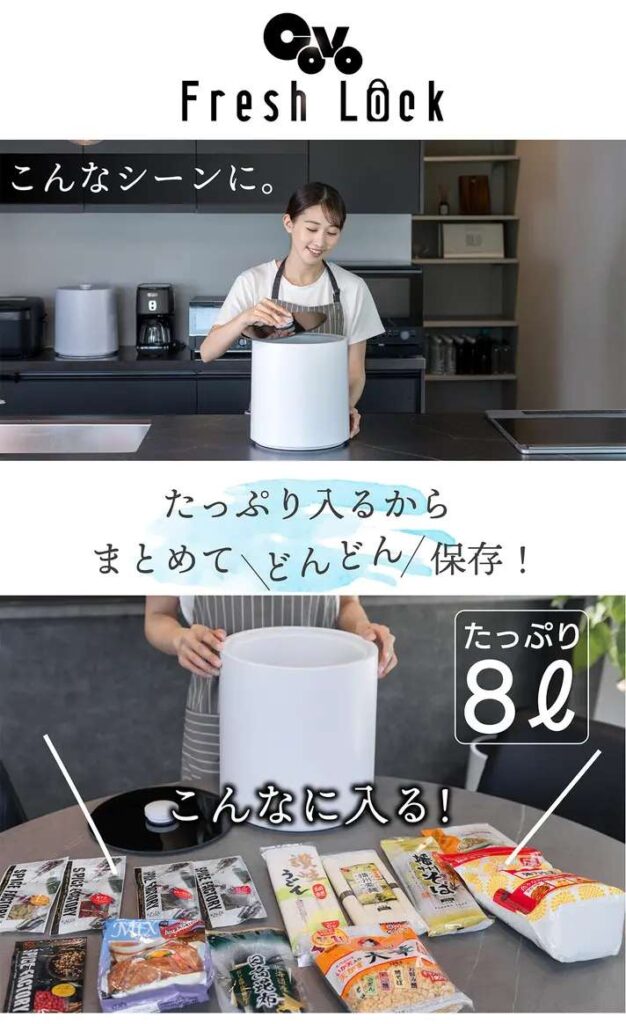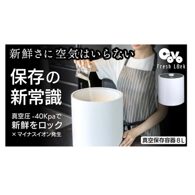 今回紹介するのはそんな課題を解決してくれそうなアイテム「COVO Fresh Lock」。8Lの大容量でありながら-40kPaという強力な脱気性能とマイナスイオン発生機能を兼ね備えた革新的な真空保存容器で、バルブを回すだけで簡単に真空状態を作り出せる使いやすさが魅力だそう。