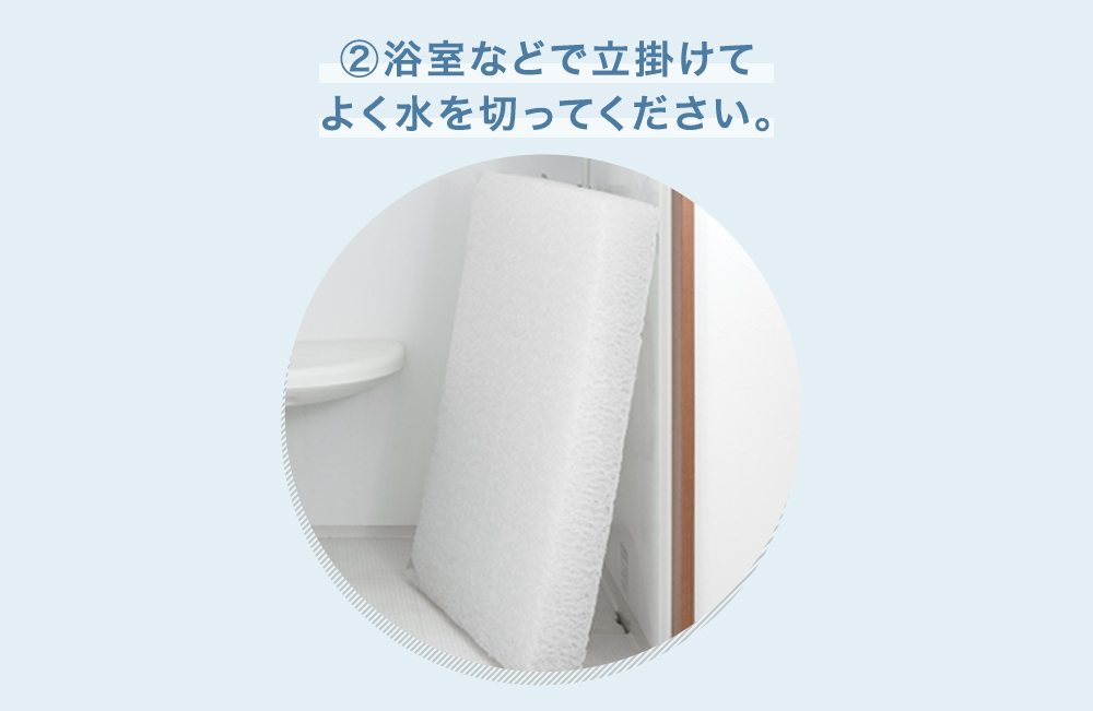 2.浴槽などに立てかけて水を切る(換気扇を回すとより効果的)
