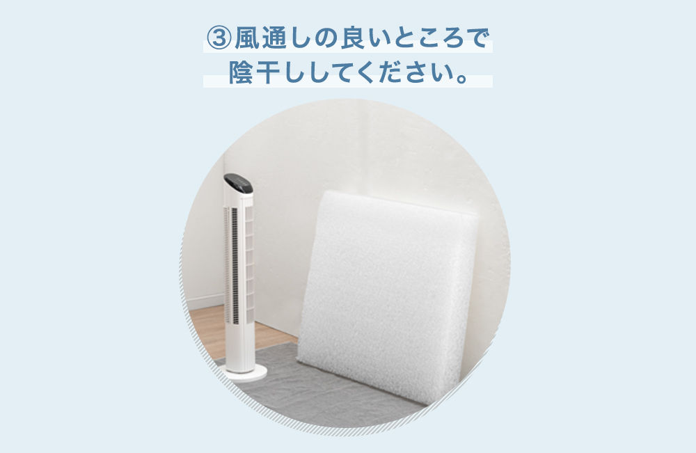 3.風通しの良いところで陰干しを行う(浴室乾燥機は40℃以下であれば使用可能)