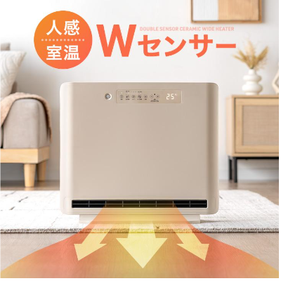 タンスのゲン株式会社は、インテリアに馴染むデザイン性と高機能を両立した「ワイドセラミックヒーター」を発売した。人感センサーと室温センサーのWセンサーを搭載し、安全性と使いやすさを追求。スリムなボディながら最大7畳に対応する暖房能力と、インテリアとしても映えるシックなデザインが特徴だ。