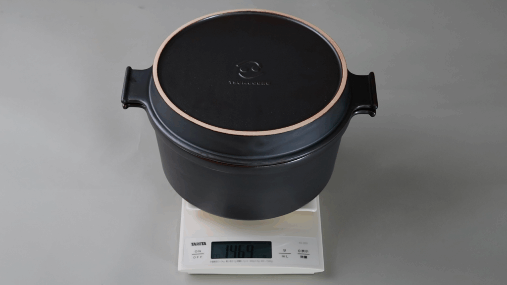 本格調理器具によくある「重い」という悩みを解消するため、瀬戸焼の職人による素材選定と微細な厚み調整により、22cmサイズながら約1.5kgという超軽量設計を実現。毎日の調理でも負担なく使える重さに抑えられている。