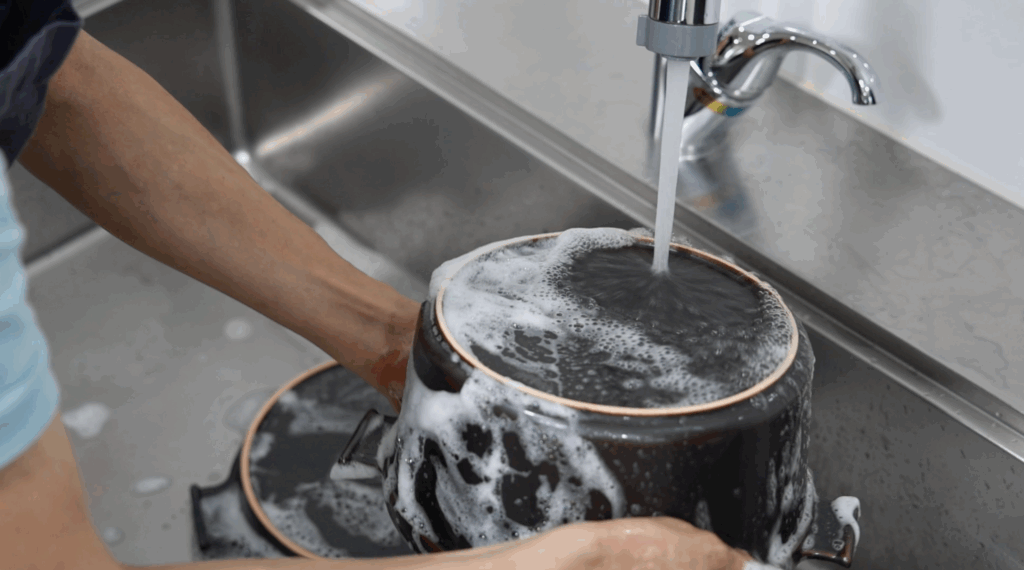 鉄鍋や土鍋のように、使用前のシーズニングや目止めなどの特別なお手入れが不要なのも大きな利点。食器用洗剤を使用でき、金属タワシでの洗浄も可能。さらに食洗機にも対応しているため、日常使いの調理器具として気軽に使える。