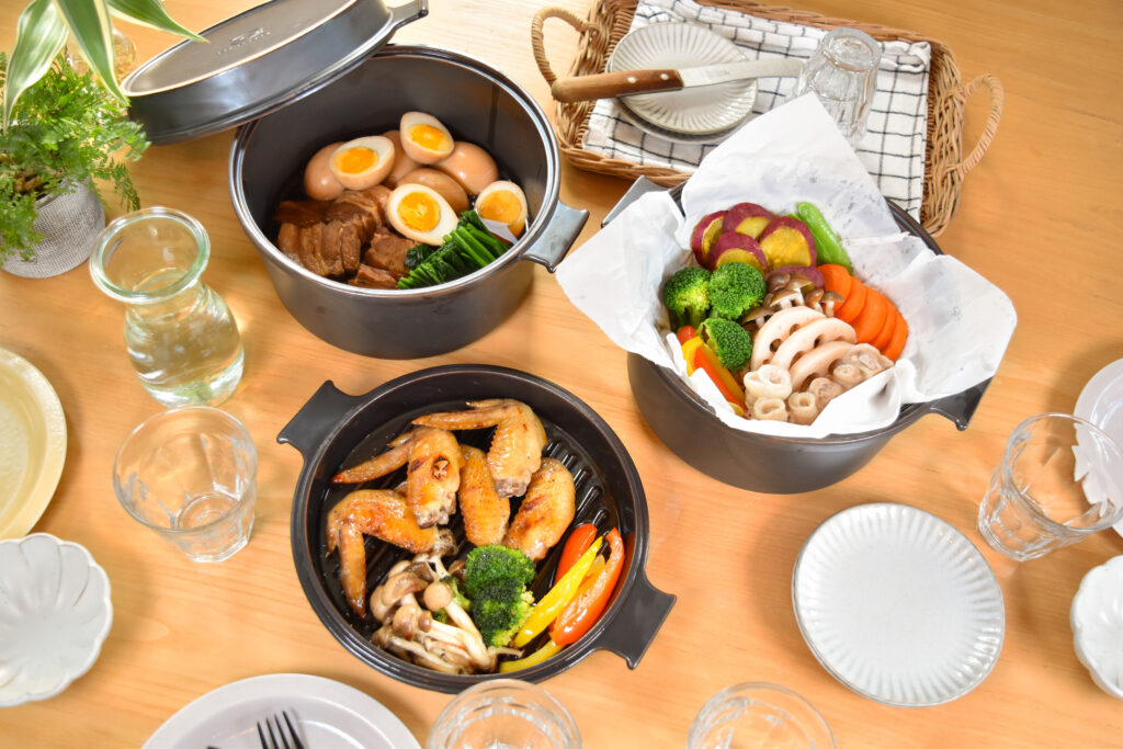 これにより、「調理→保存→再加熱」のプロセスを1台で完結させることができ、短調理や作り置きにも最適だ。また、蓋はスキレットやグリルプレートとしても活用できるなど、様々な調理方法に対応できる。