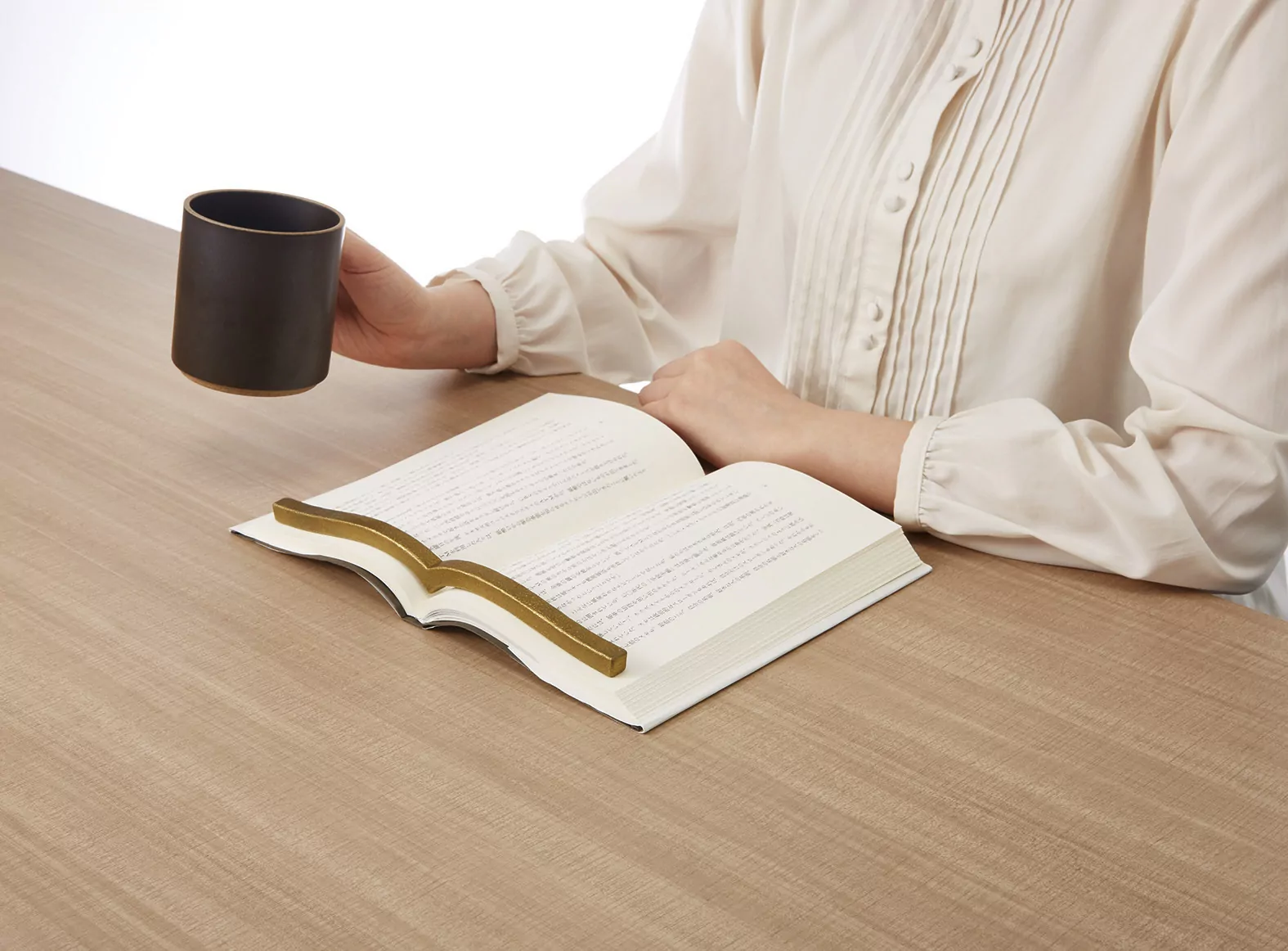本を開いたままメモを取ったりしていると、弾力で本が勝手に閉じてしまった経験は無いだろうか。勝手に閉じられると見ていたページが分からなくなってしまうので、地味にストレスを感じる。しかし「本に寄り添う文鎮」は本を開いた際の形状に沿った形をしているので、ページの弾力により持ち上がりにくく、分厚い本でも安定して開いた状態を保持できるとのこと。技術・技法書などを読む方や、教科書などを使って勉強する学生にとって非常に便利なアイテムだろう。