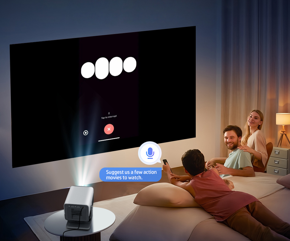 ChatGPTを搭載し、リモコンから音声入力することで操作が可能だとしている。これにより映画選びをAIに任せることができ、音声で話しかけるとAIが考えて映し出すという。たった一言で世界が動き出し、あなたの声に応え映画や学びを提案してくれるとしている。