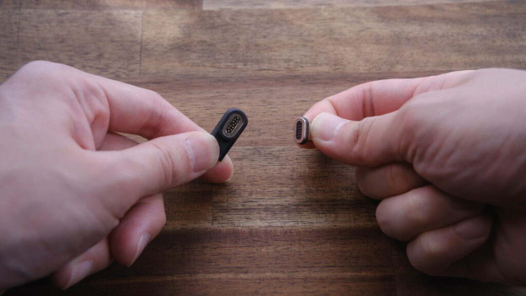 瞬時に付け外しできるので、いちいちケーブルを刺すという手順が必要なくなるのはメリットだ。ケーブルを外すときもスムーズすぎて、なんて画期的な技術なのだろうと感動した。