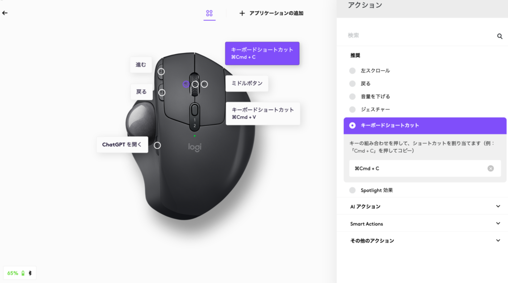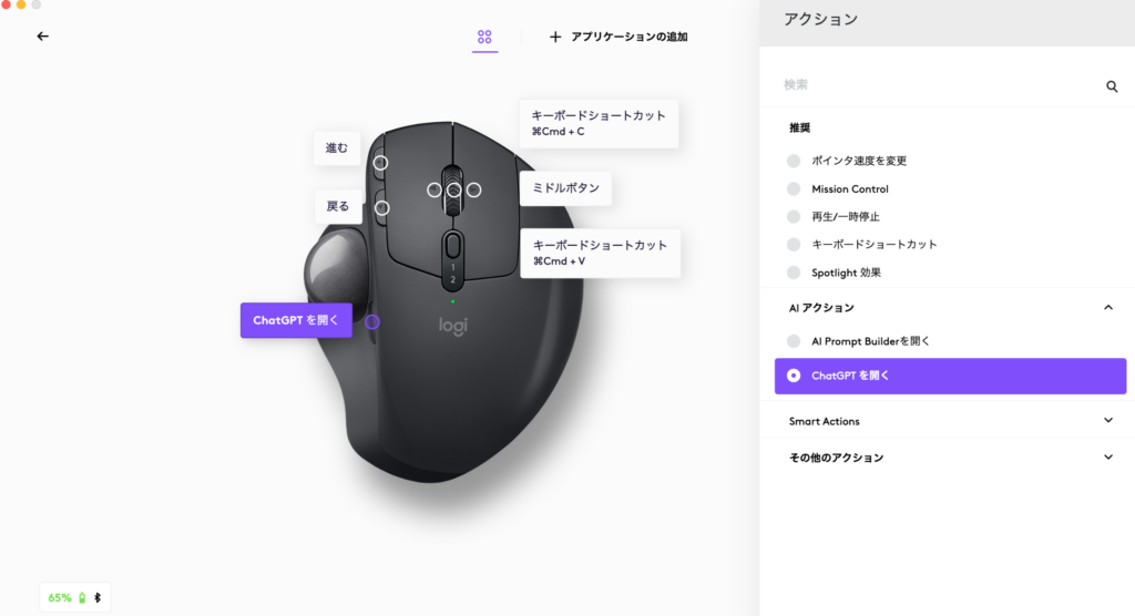 トラックボールマウスは他にも選択肢があるが、今のところ安定して使いやすいのはMX Ergo Sくらいじゃないだろうか。特にソフトウェアが使いやすく、初心者でも簡単にカスタマイズできるはずだ。またワンボタンでChatGPTを呼べるのが便利すぎるので、これだけでも他社製品より優位に立っている気がする。