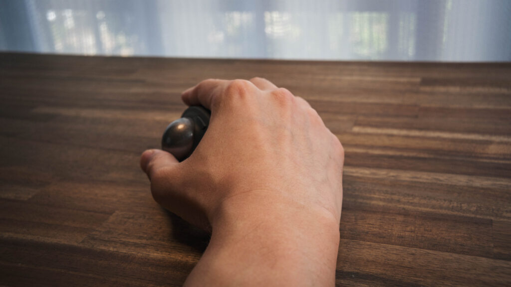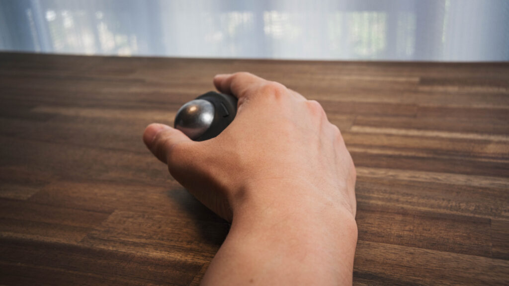 それに角度をつけた状態でも作業できるため、手首が楽だ。トラックボールでの操作はこれといって不満がなく、ボールが突っかかることもほとんどない。