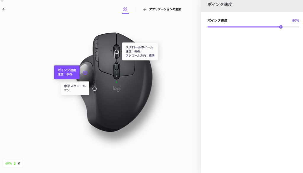他社のトラックボールマウスも使ったことがあるが、ソフトウェアが使いづらいものもあった。それに専用ソフトウェアすらないメーカーもあるので、そう考えるとMX Ergo Sの機能性は素晴らしい。