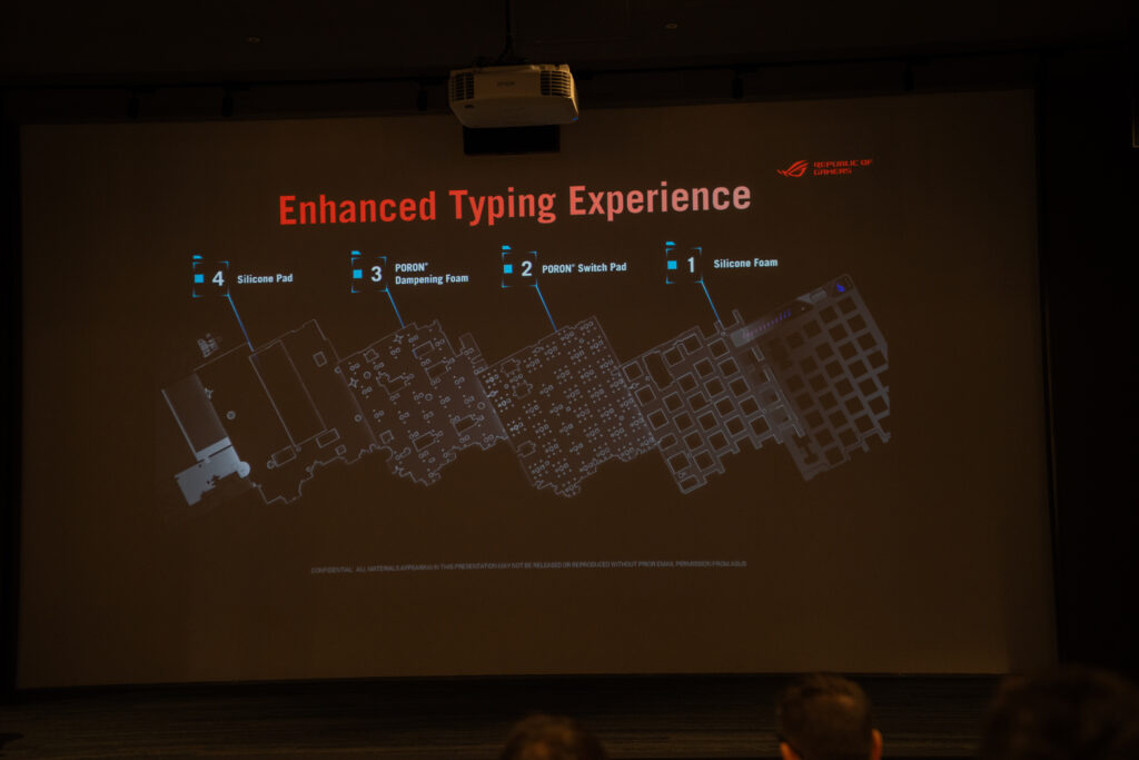 打鍵感に影響がある部分でいうと、その構造もなかなか手が込んでいる。本体には4層にもなる吸音+衝撃吸収用のダンパー構造が用意されており、キータッチ音を吸収し、よりクッション性のあるタイピングフィーリングを実現するという。