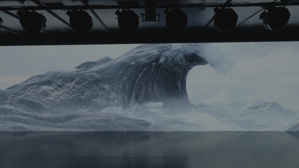 今回主にテストしているのは、シミュレーターとレンダラーを動かしたときの速さです。使用したデータは「HOKUSAI : ANOTHER STORY in TOKYO」で作成した、「神奈川沖浪裏」のワンシーンでなるべくフォトリアルにという要件だったためかなり重めのデータになっています。