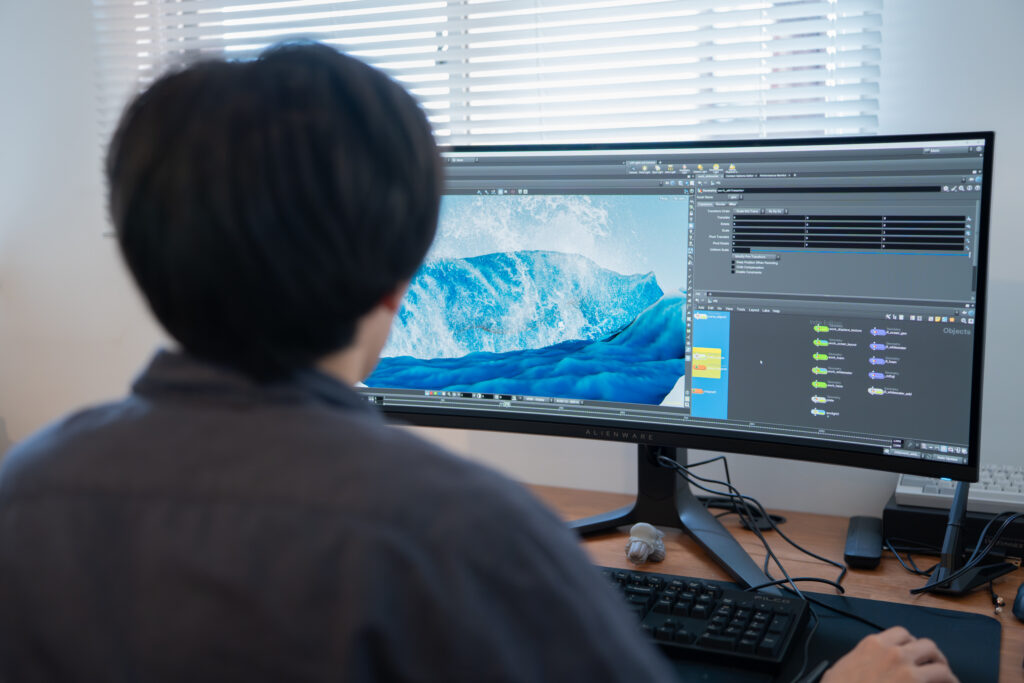 普段の作業自体はデスクトップPCを使ってまして、CPUはi9-14900K、グラフィックスはRTX 4090です。主に使用しているHoudini(CGソフト)そのものはそこまで動作要件が厳しくないのですが、計算に使用するシミュレーターや書き出す際のレンダラーの種類によってはCPU性能が重要なもの、グラフィックス性能が重要なものなど様々なため、どちらも重要になります。ただ最近は本当にソフトが GPUの機能をめちゃくちゃ使うようになっているので、グラフィックス性能は特に大事です。