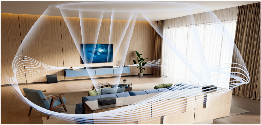 特にサウンドバー部に19基、完全ワイヤレス・リアスピーカーに各4基ずつ、そしてワイヤレス・サブウーファーにデュアルウーファーを搭載し、合計29基という贅沢なスピーカーユニット構成により、臨場感たっぷりの世界観を楽しめそうだ。
