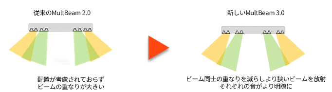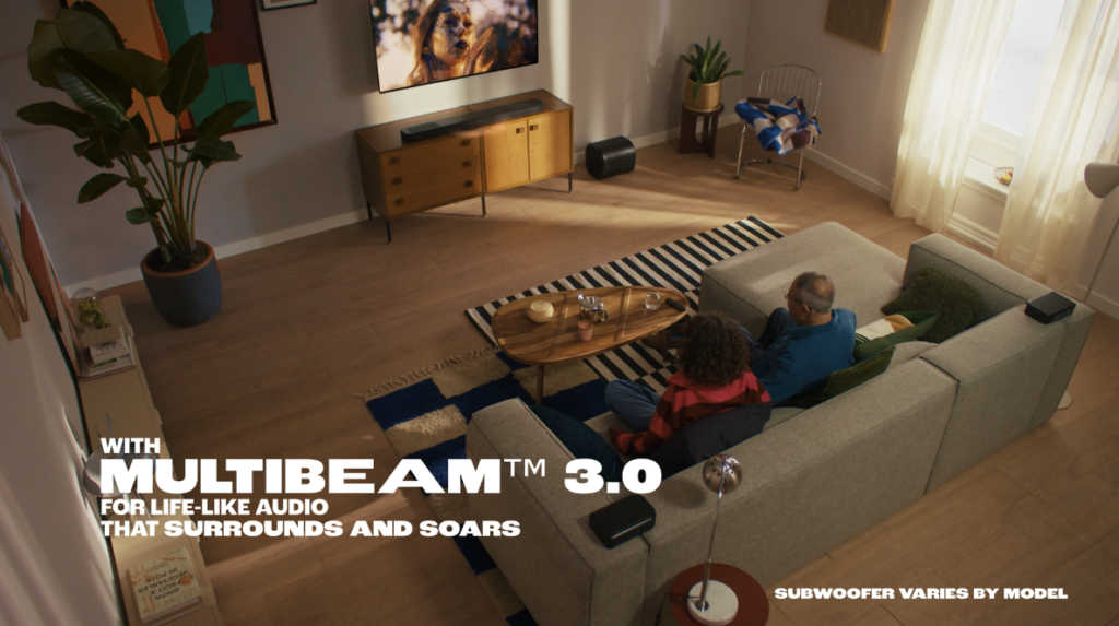 サラウンド技術面では、JBLの独自技術である「MultiBeam」が「MultiBeam™3.0」へと進化。壁や天井に放射される音のビームの強さと正確さが向上し、各チャンネルの音がより明瞭かつなめらかにつながるようになったようだ。