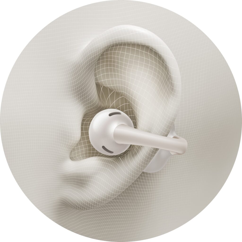 また左右対称のデザインを採用しているため、左右を問わず充電ケースへの収納や装着が可能。取り出してすぐに装着できる手軽さも魅力だ。