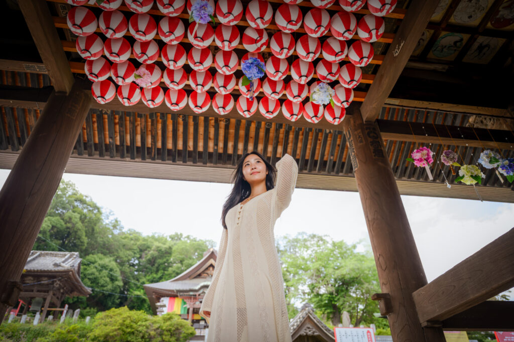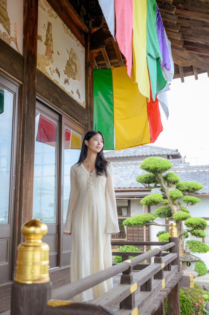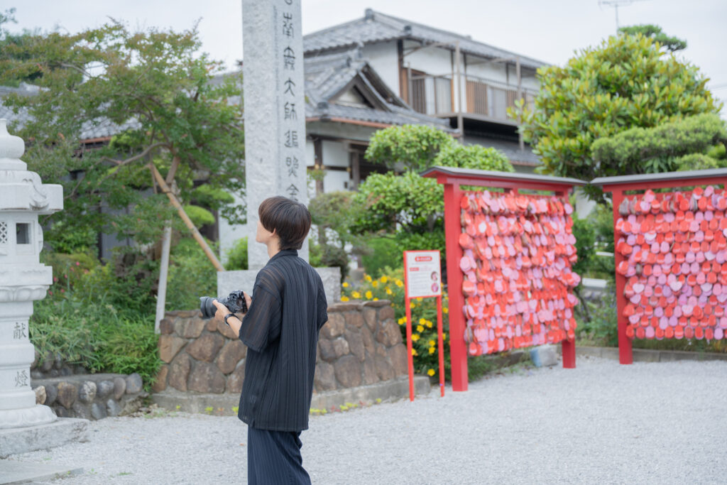 Soft Filmが活躍したのはモデル撮影のシーンで、肌や太陽光の写りが決め手でした。光がすごくソフトなニュアンスになるため、境内など野外や人物を撮るときにはコチラを使用しています。