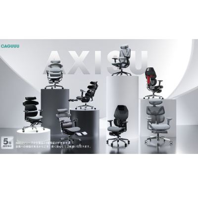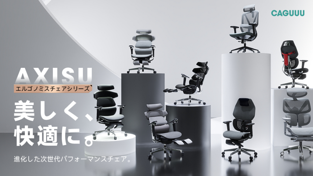 CAGUUU株式会社は、新しいオフィス家具シリーズ「AXISU(アクシス)」を発表した。このシリーズの第一弾として、長時間のデスクワークによる肩こりや腰痛に悩むユーザーにもおすすめな、人間工学に基づいたエルゴノミクスチェア5モデルを2025年6月27日より販売開始する。