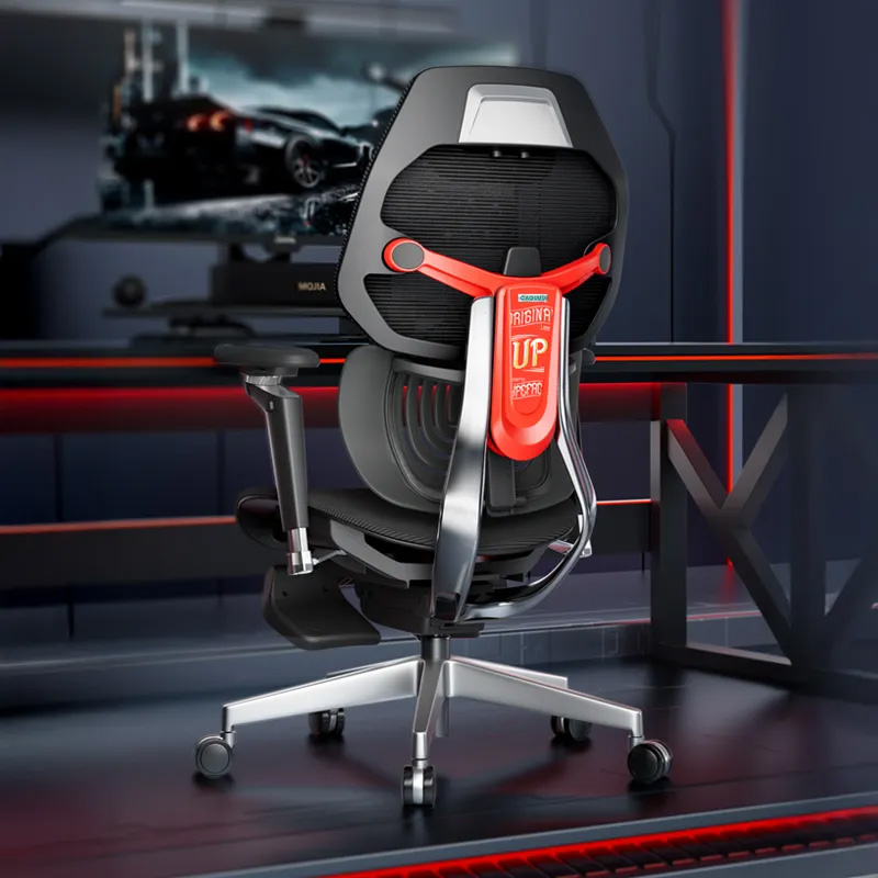3つ目に紹介するのがゲーマー向けの高機能モデル。存在感あるデザインと多機能なアームレスト、多段階のリクライニング角度を備え、ゲーミングルームだけでなくモダンなオフィス空間などにも馴染む設計となっている。