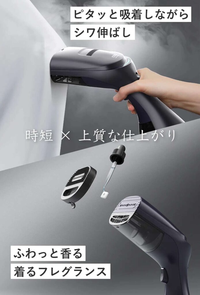 特に新搭載の「フレグランス機能」は、アイロンがけ後に香水やアロマを吹きかけるというユーザーの習慣に着目して開発されたもののようだ。スチームと同時に香りをまとうことで、表面に吹きかけるだけでは得られない、自然に香る「着るフレグランス」を実現しているとのことで、スチーマーを使ったことのない人も本製品を日常に取り入れてみてはいかがだろうか。