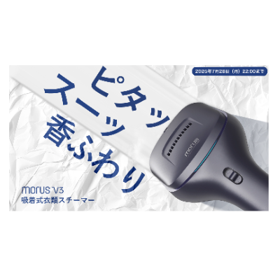 メディアで話題となり、昨年は総額1億円を達成した吸着式衣類スチーマーの最新作「Morus V3」がMakuakeにて登場した。前作「Morus V6」からさらに進化し、シワ伸ばし機能の強化に加え、新たに「香り付け機能」を搭載。衣類の内側から一日中香りが広がる「着るフレグランス」という新体験を実現している。