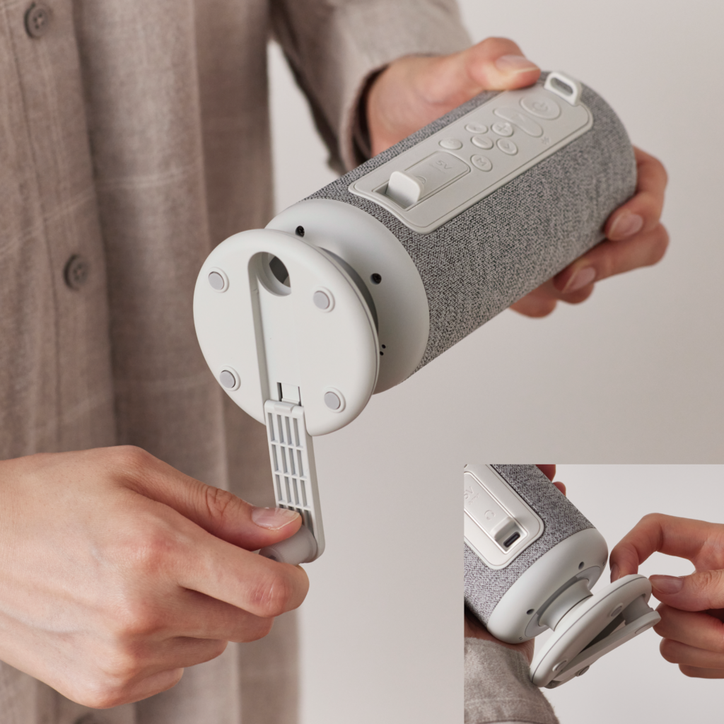 一方で「CRANKSPEAKER」は、日常のインテリアに調和するデザインと高音質を重視しているとのこと。コンパクトな筐体でありながらフルレンジスピーカーとパッシブラジエーターを搭載し、防災グッズを普段使いのBluetoothスピーカーへ昇華させるデザインと機能性が、この製品の最大の特徴と言えるだろう。