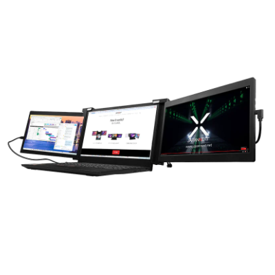 2画面モバイルモニター「Tri-Screen」は手軽に最大3画面の拡張スクリーンを実現。映像入力端子はmini HDMIおよびUSB Type-Cに対応、さらに給電用のUSB Type-C端子を装備。
