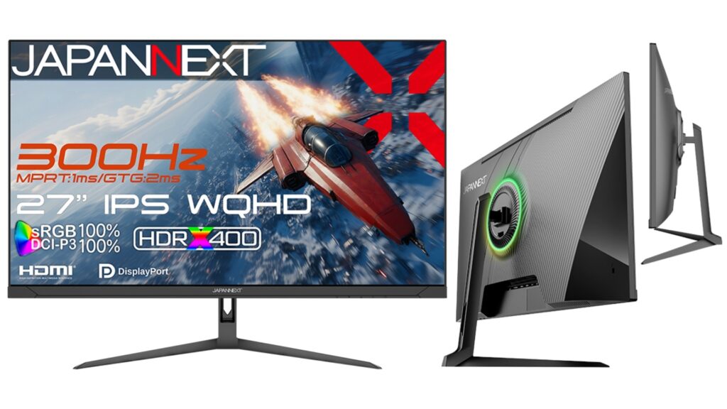液晶ディスプレイ製品の開発・製造・販売を手がけるJAPANNEXT(ジャパンネクスト)は、ハイエンドゲーミングモニター「JN-i27G300Q」を2025年12月5日よりAmazon限定で発売する。27インチIPSパネルを搭載し、300Hzリフレッシュレートと1ms応答速度を実現しながら、直販価格31,980円(税込)という価格を実現したモデルだ。