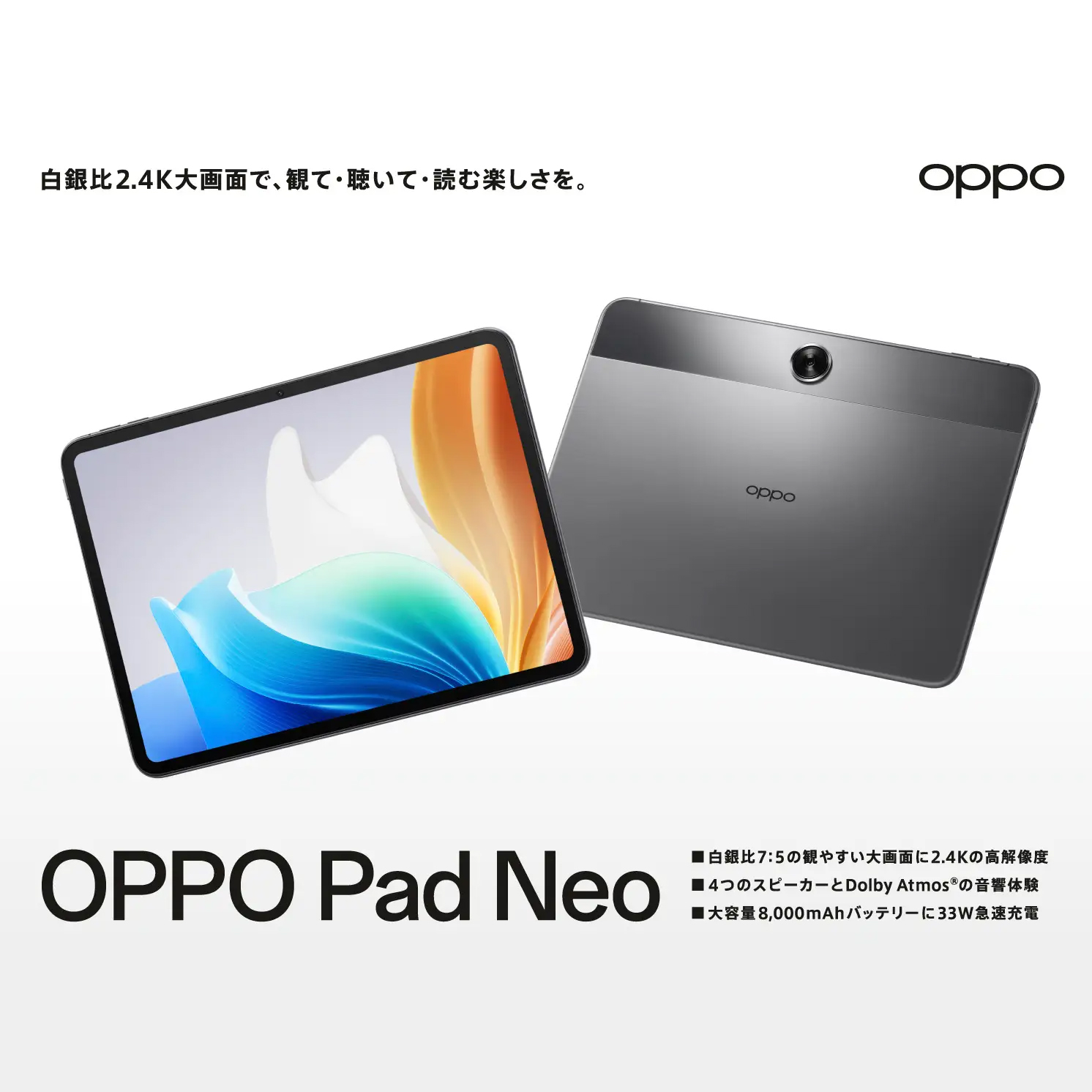 7:5アスペクト比のAndroidタブレット「OPPO Pad Neo」が発売!OPPO Pad 2との違いは?
